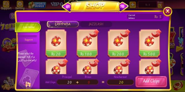 Depositing and withdrawing money is super easy. Players can use Easypaisa, JazzCash, or Bank Transfers for transactions. Withdrawals are quick and hassle-free, and players also get bonus chips when they deposit for the first time.